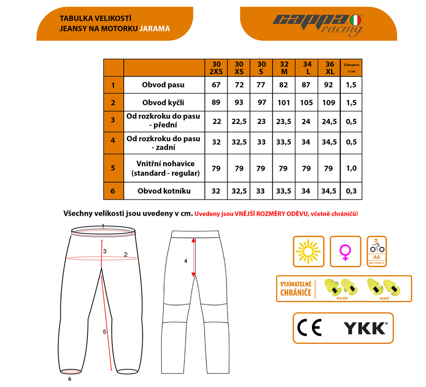 - Vyztužené kevlarem v oblasti rozkroku, hýždí a kolen