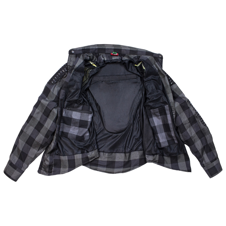 Díky podšívce ze síťoviny a horní flanelové vrstvě je tato košile ideální i do horkých dnů a městského provozu. Oproti klasickým bundám nabízí větší pohodlí, především v kombinaci s moto džínsy. Košile je volného střihu a vhodná spíše pro nošení přes kalhoty.