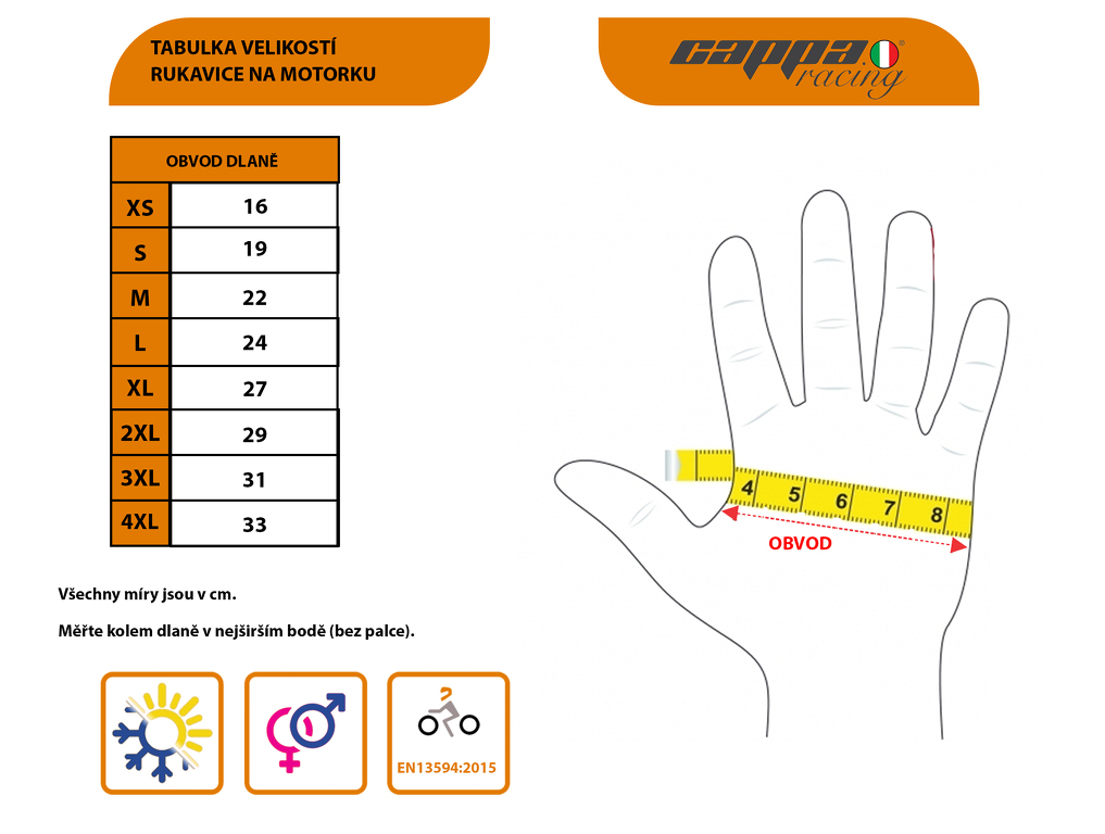 Rukavice: 40% Hovězí kůže, 20% Polyester, 20% Polyurethan, 10% Nylon, 5% Elastane, 5% Ostatní