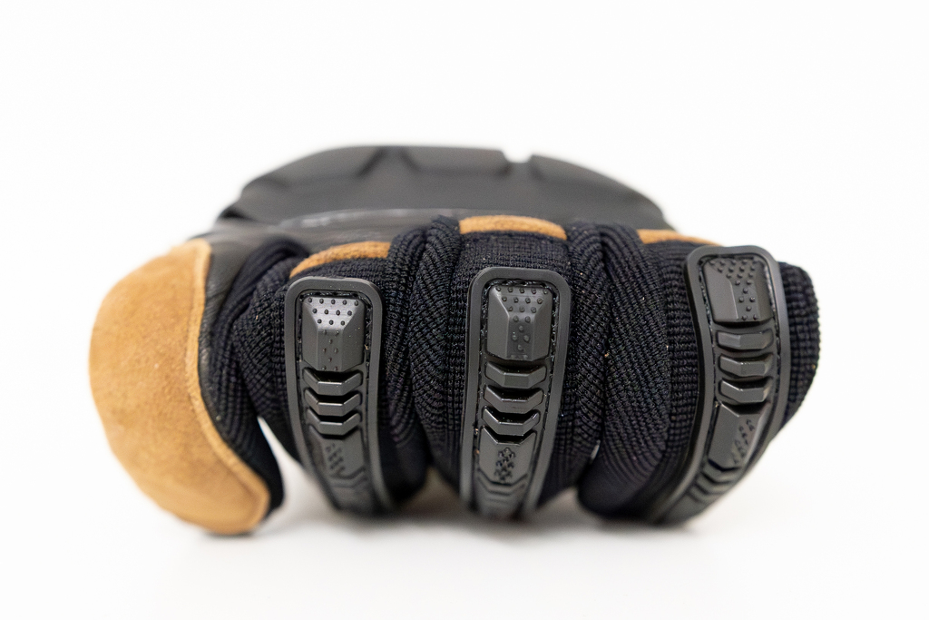 Rukavice RIVOLLI jsou vybaveny pevnými polymerovými chrániči, které poskytují spolehlivou ochranu proti nárazům a oděrkám v případě pádu. Tyto chrániče jsou certifikovány podle normy EN 13594:2015, což znamená, že splňují přísné evropské standardy pro ochranné vybavení pro motorkáře. Rukavice pokrývají klíčové oblasti, jako jsou zápěstí a prsty, a zajišťují tak vysokou úroveň ochrany při zachování pohodlí.